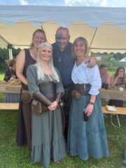 Numerous friends and family members have accepted Evelin and David’s invitation. The guests, dressed in medieval clothing, are welcomed with a cool drink and look forward to spending time together.